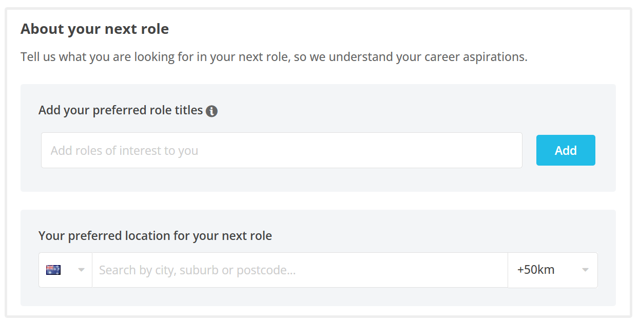 The final part of setting up your Humanforce Talent profile is telling us about what you want for your next role.