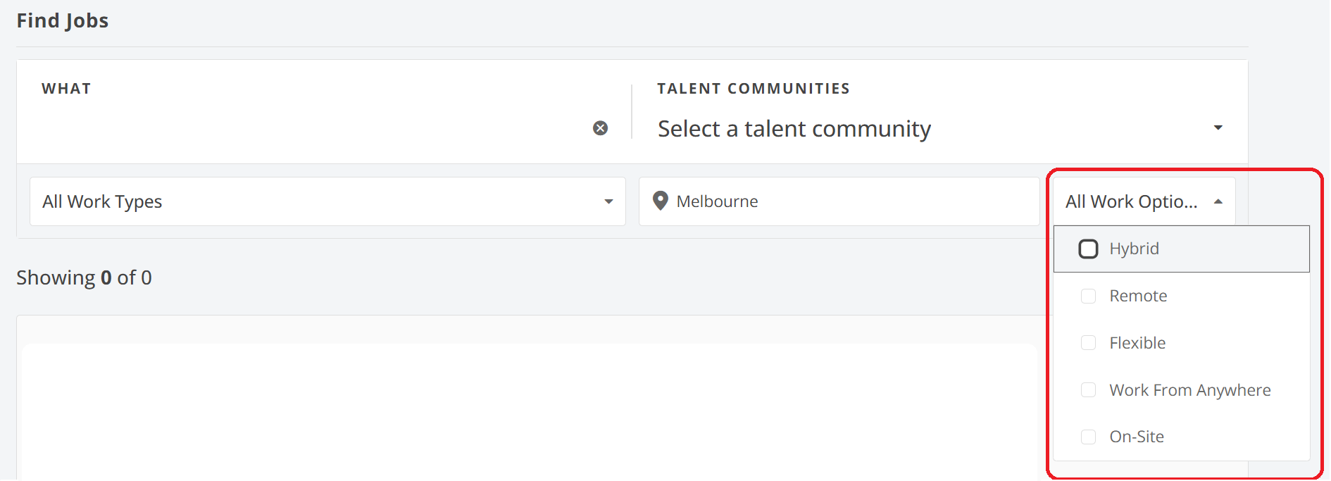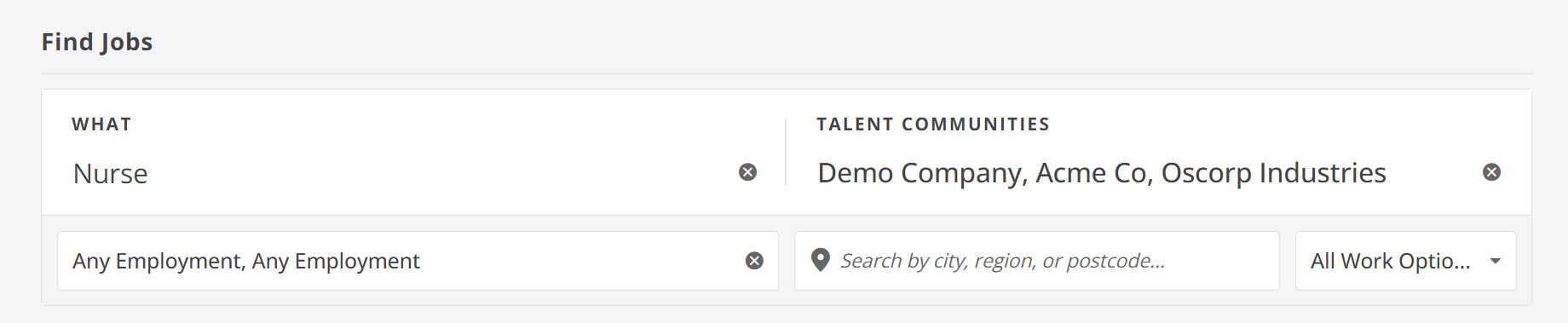 Here you can perform a search for any jobs that have been posted publicly by a Talent Community to which they are connected.