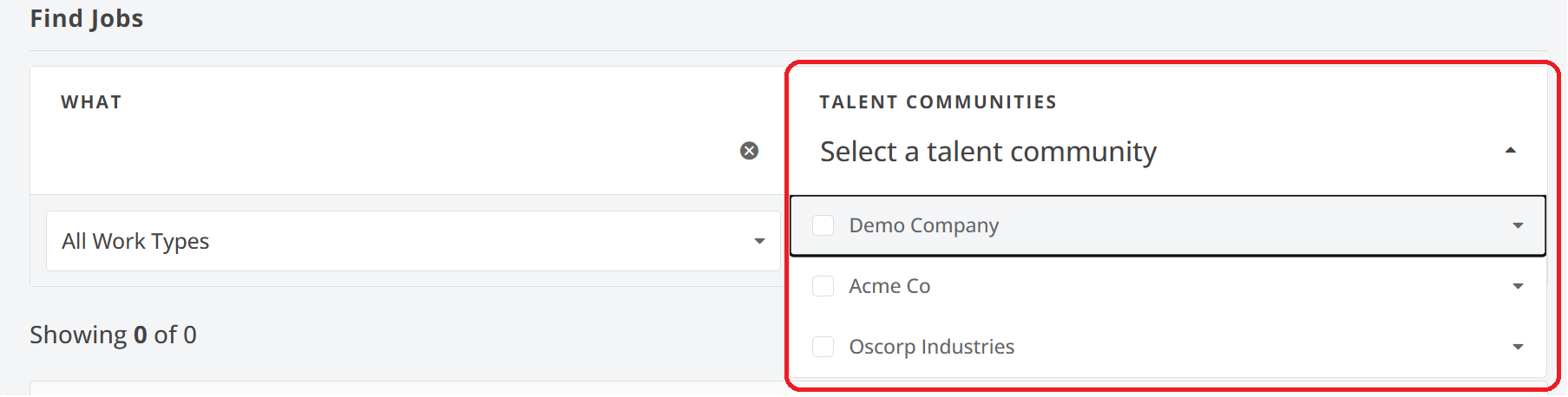 Filter which Talent Communities from your connected communities, that you would like to search for roles with.