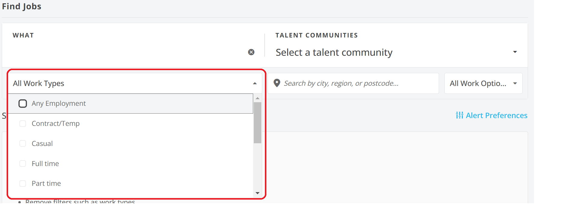 Narrow down your search by what Work Type you are interested in.