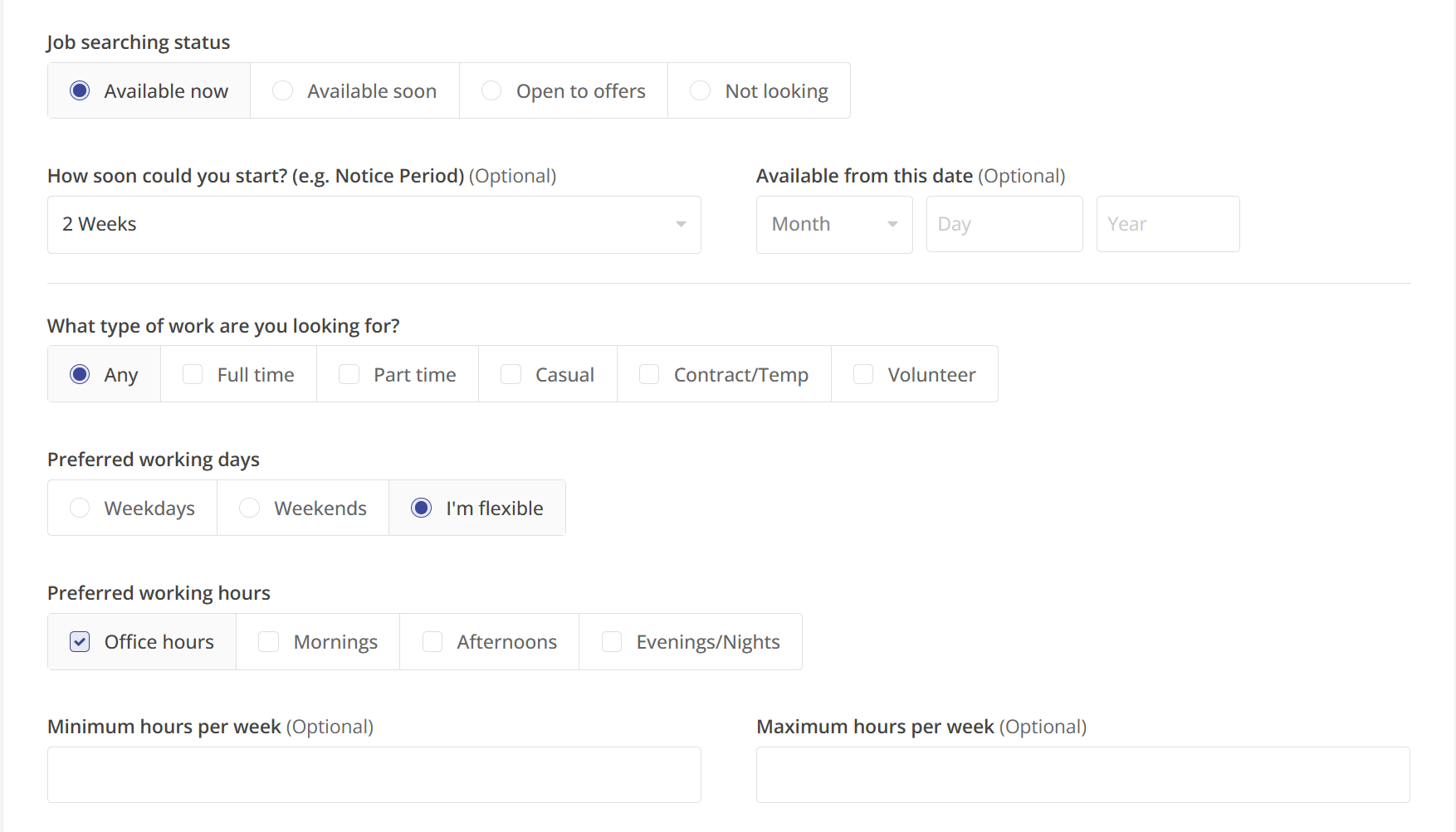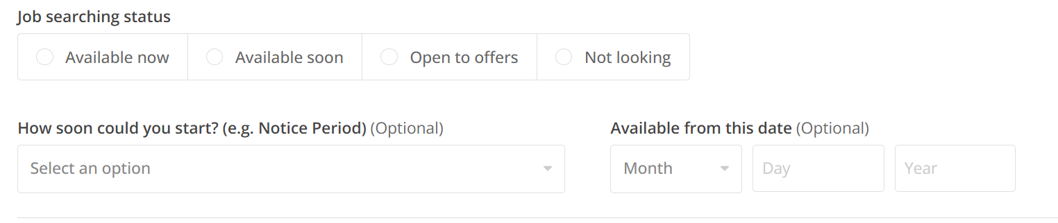 Here you can provide more information on your availability. This helps recruiters understand your job search and how soon you can start if selected for a vacancy.
