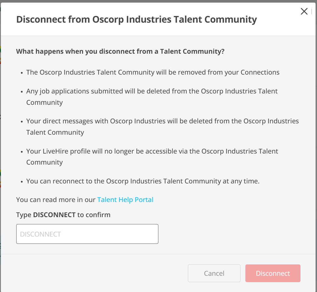If you would like to remove your connection to a specific Talent Community, you can do so by clicking the 3 dots on the far right of the connection.
