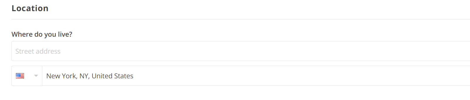 Here you will enter the specific street address, as well as your country and city/suburb of residence.